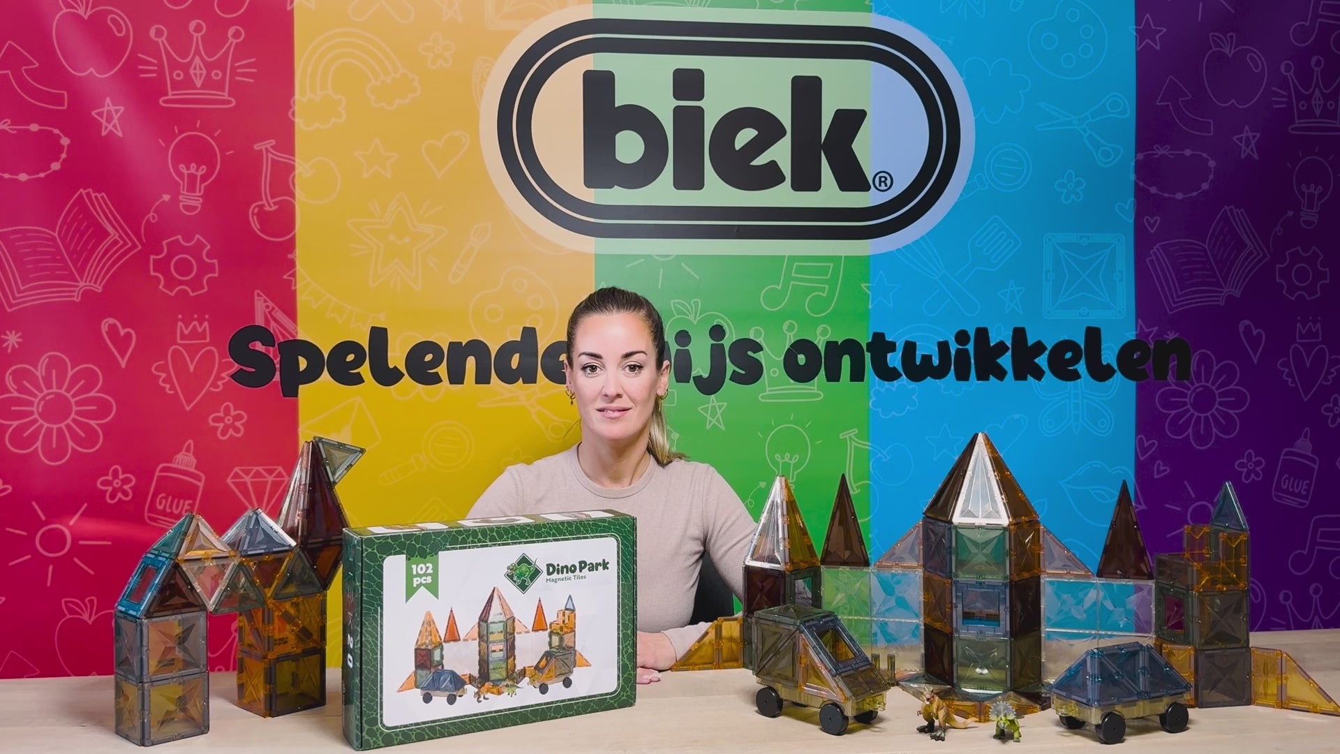 Met de 102-delige Dino Park set van BIEK20 kunnen kinderen vrij spelen en hun eigen fantasiewereld bouwen. Dit open ended speelgoed stimuleert de ontwikkeling van kinderen en valt onder de categorie montessori. Het bevordert de creativiteit, verbeeldingskracht en cognitieve vaardigheden. Daarnaast helpt het bij de ontwikkeling van motorische vaardigheden. De set is voorzien van hoogwaardige kwaliteit magnetische tegels met het starlight design.